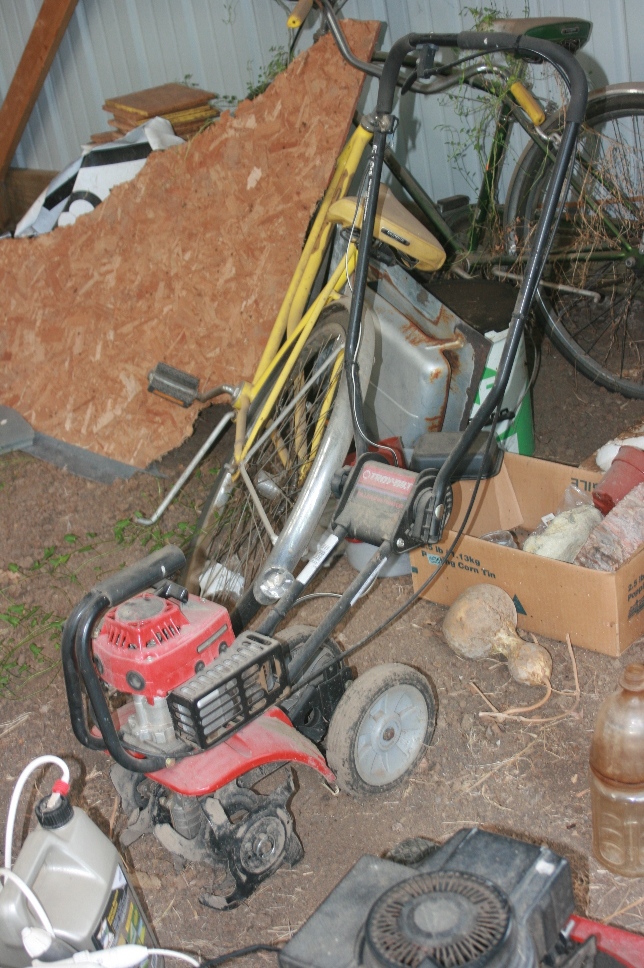 - Troybilt 10” Garden Tiller, Wheel Barrow