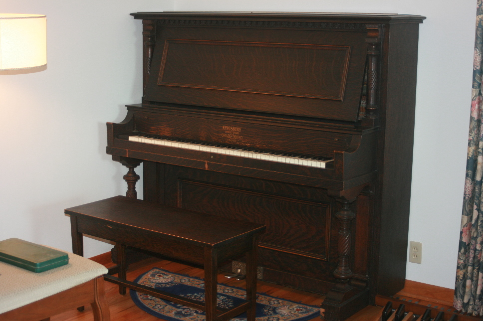 - Oak Kingsbury Upright Piano, Piano Stool