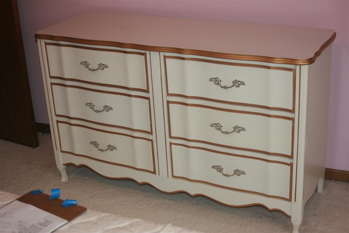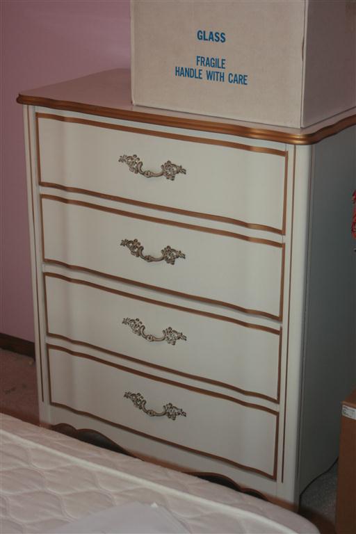 - 4 pc. French Provincial Bedroom Set – Double Bed, Dresser, 4 Drawer Chest & Desk