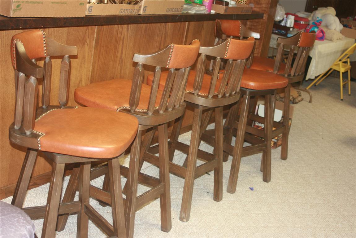 - 6 Wood Bar Stools, Heart-Shaped Back Chair