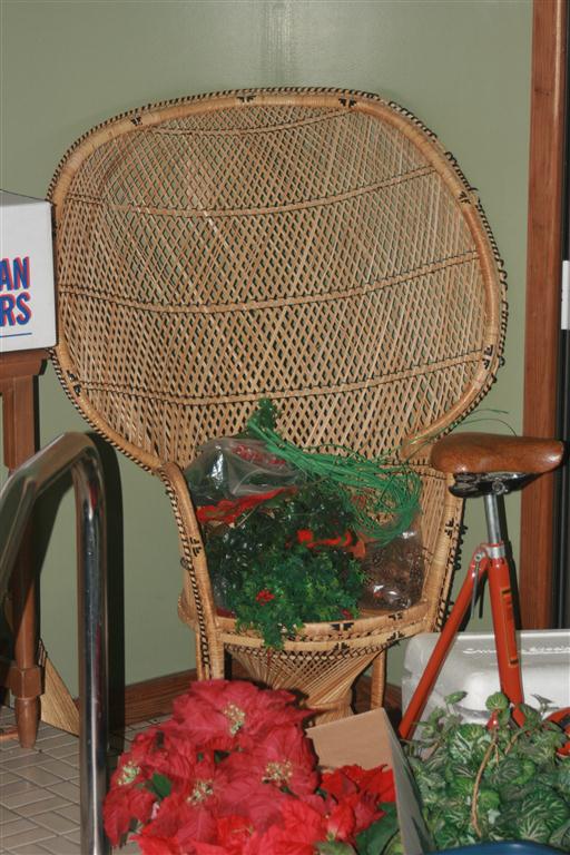 - Brass Hat Rack, Magazine Rack, Wicker Chair
