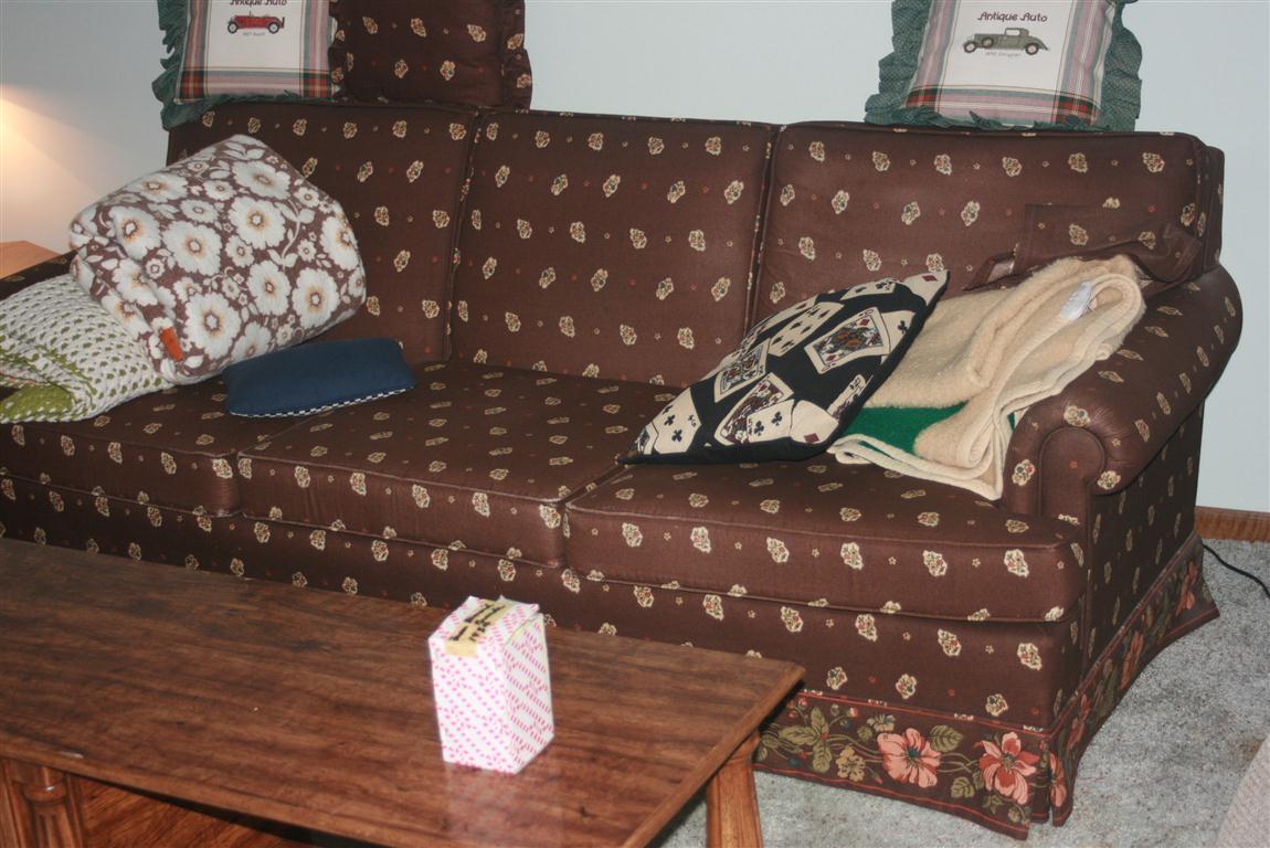 - Brown/Rust Plaid Sofa & Loveseat, Sev. Lamps