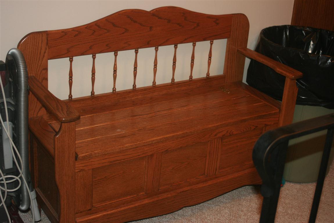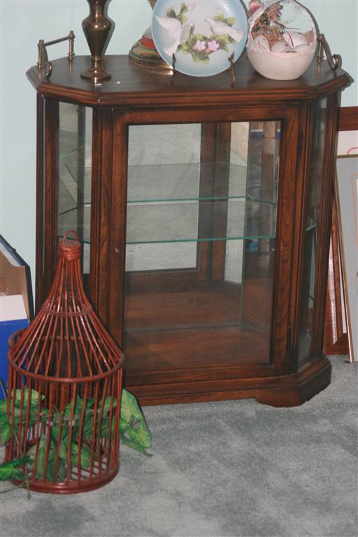- Sm. Lighted Curio Cabinet, Oak Hall Seat
