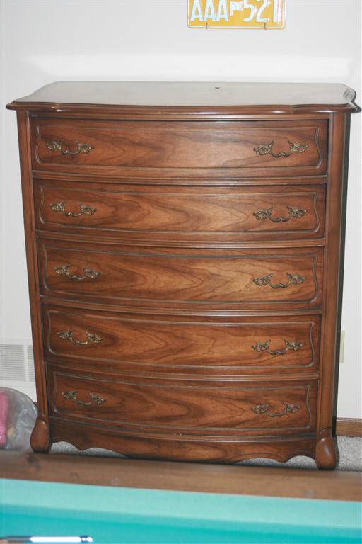 - 4 pc. Thomasville Bedroom Set – Queen Bed, Triple Dresser w/Mirror, 5 Drawer Chest & Nightstand