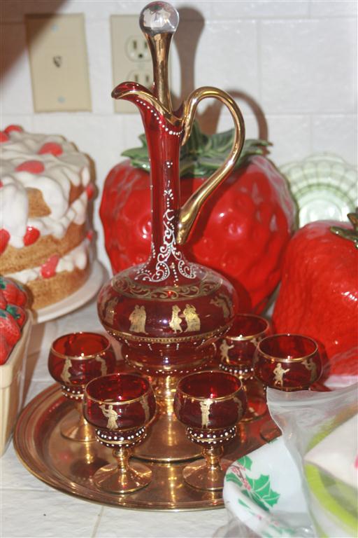 - Prayer Lady Toothpick, Ruby Decanter Set